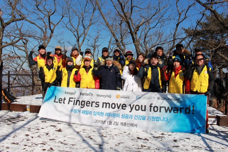 계룡산 정상에서 핑거 패밀리 구성원과 구성원 가족 모두의 행복과 건강을 비는